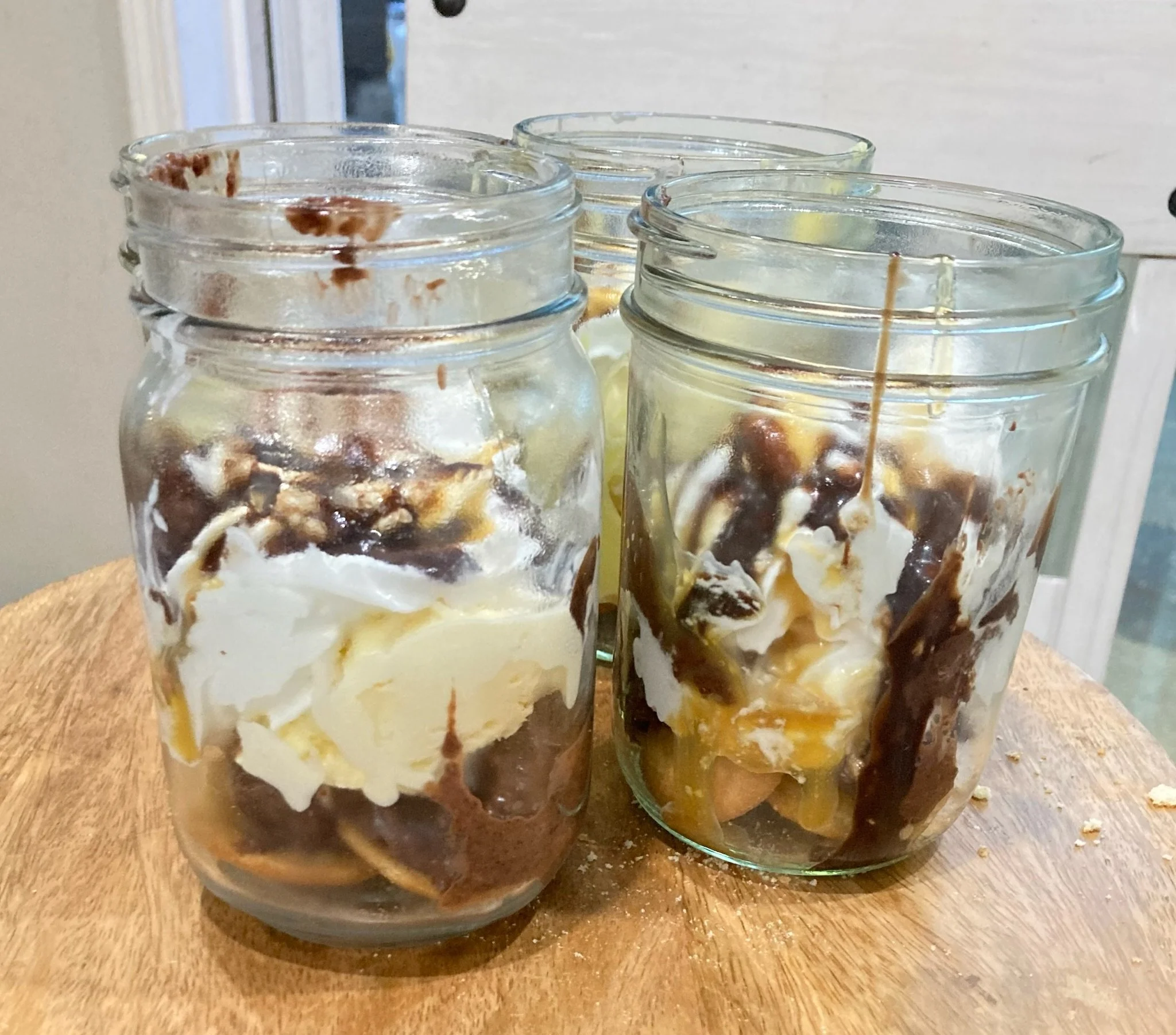Add the whipped cream to the top. You’ll want it to go to the rim of the jar.